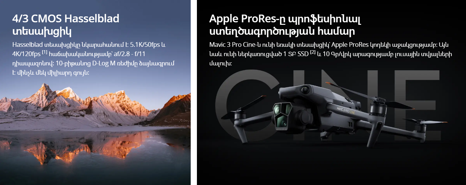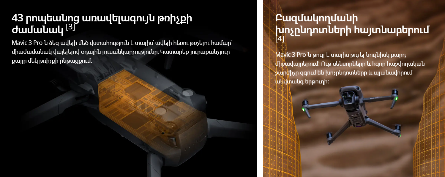 4/3 CMOS Hasselblad տեսախցիկով, 70 մմ հեռաօպտիկական տեսախցիկով և 166 մմ հեռաօպտիկական տեսախցիկով Mavic 3 Pro-ն օգնում է ձեզ ստեղծել ապշեցուցիչ աշխատանքներ տարբեր իրավիճակներում։