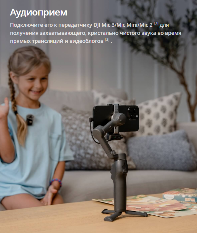 Раскройте свой творческий потенциал. Osmo Mobile 8 обеспечивает плавное горизонтальное вращение на 360° и лёгкую съёмку с нижнего ракурса. Благодаря прямому подключению к телефону вы сможете наслаждаться встроенным отслеживанием, которое всегда держит ваших близких в кадре. Многофункциональный модуль сочетает в себе функции отслеживания людей и домашних животных, освещения и аудиосъёмки , гарантируя, что объект съёмки всегда будет в фокусе — независимо от того, создаёте ли вы контент, снимаете повседневную жизнь или участвуете в видеозвонке. Не упустите ни одного момента!