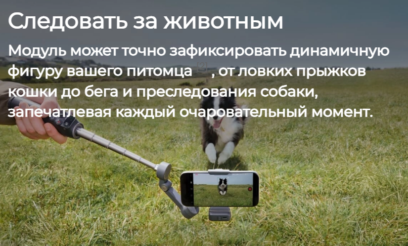 Модуль способен интеллектуально отслеживать людей, а также кошек и собак. После простой установки вы сможете запечатлеть трогательные моменты с людьми и домашними животными на камерах, в программах для прямых трансляций и на других платформах для съёмки. Его мощные функции слежения также очень полезны при съёмке сцен с несколькими людьми. Будь то выставка или парк, подвес может гибко реагировать и точно следовать за выбранной целью.